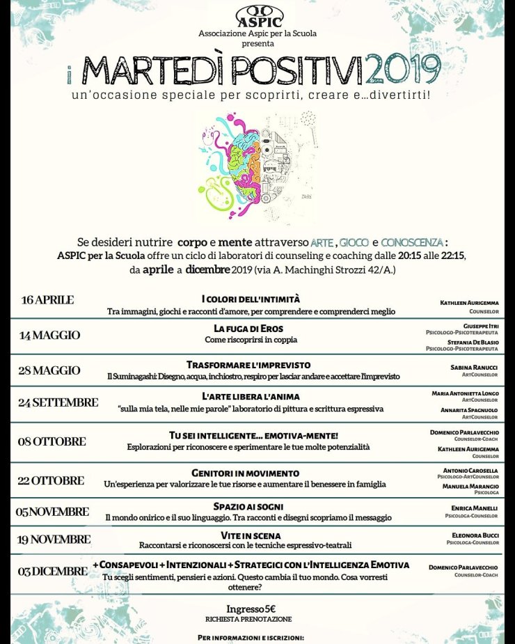 Da martedì 16 aprile e fino a dicembre, presso Aspic per la Scuola di Roma iniziano i Martedì positivi.
